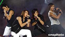 臺灣當(dāng)紅組合ENERGY出席在重慶市奧體中心舉行的“沸點空間九·二五演唱會”。ENERGY勁歌熱舞讓全場歌迷沸騰不已。作者:郭晉嘉