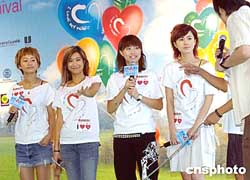 香港音樂(lè)組合COOKIES四名成員, 9月26日在香港跑馬地馬場(chǎng)出席 “世界心臟日2004”,并登臺(tái)表演助興。作者:洪少葵