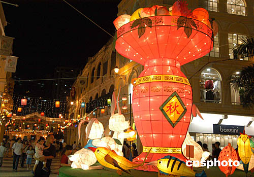 中秋將至,澳門街頭的賀節(jié)花燈,為中秋佳節(jié)增添歡樂的氣氛。作者:梁永強
