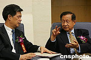 中國(guó)新聞社總編輯郭招金(左)出席中國(guó)競(jìng)爭(zhēng)力論壇。中新社記者:高遠(yuǎn)