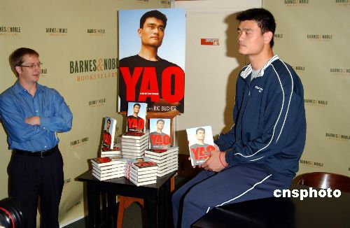 姚明在紐約簽售自傳《兩個(gè)世界的生活》