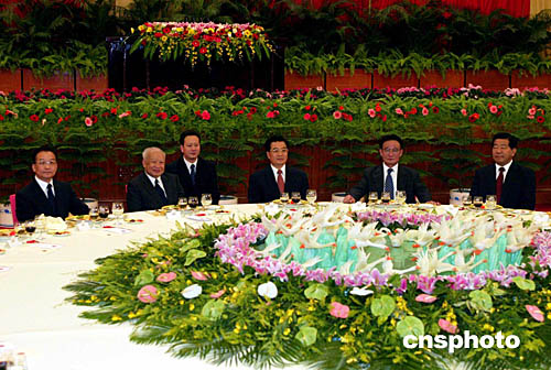胡錦濤、吳邦國、溫家寶、賈慶林、曾慶紅、黃菊、吳官正、李長春、羅干等中國領(lǐng)導(dǎo)人蒞臨會(huì)場(chǎng),與各界嘉賓共賀國慶。
