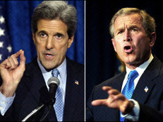 首次電視辯論會(huì)將會(huì)以已經(jīng)造成1055名美軍死亡的伊拉克戰(zhàn)爭(zhēng)及反恐戰(zhàn)爭(zhēng)為焦點(diǎn),這兩個(gè)問(wèn)題也是過(guò)去幾個(gè)月雙方競(jìng)選的重要議題?死锂(dāng)天在接受ABC采訪時(shí)指責(zé)“布什正在嚇唬美國(guó),他天天都在談恐怖,人們看到的都是世界發(fā)生的可怕的照片,事實(shí)的確如此,人質(zhì)被斬首、俄羅斯學(xué)校所發(fā)生的恐怖事件。”
