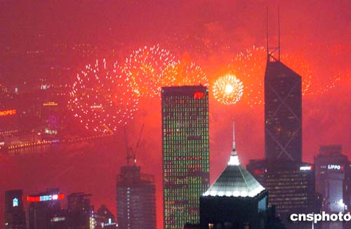 紅色五角星形及心形煙花,還有金棕櫚樹的煙花、帶炸響的大金柳樹煙花和大量金、銀色柳絲煙花等,已為觀眾帶來驚喜,留下深刻印象。璀璨的煙火,悠揚(yáng)的樂韻,節(jié)日的歡騰,將觀賞煙花市民的高漲情緒不斷推向極點(diǎn)。