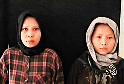 “半島”電視臺星期三播出了武裝組織綁架十名外國人質(zhì)的錄像,其中兩人是受雇于當?shù)匾患译娮庸镜挠∧崤,分別為羅斯達.賓蒂.阿南和拉菲肯.賓蒂.阿明。