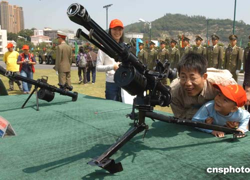 當(dāng)天有一千五百多名澳門市民參觀了軍營,他們對部隊的裝備興趣十足。作者:梁永強(qiáng)