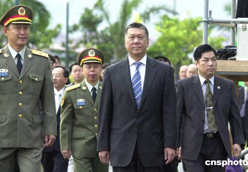 特首何厚鏵觀看軍事科目、文藝節(jié)目表演后,參觀了戰(zhàn)士們的生活、工作和學(xué)習(xí)環(huán)境,并向駐軍贈(zèng)送軍樂樂器。