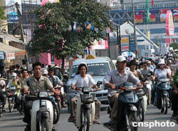 踏入河內(nèi),置身這座西元一0一0年建立的古都中,仿佛重回遙遠(yuǎn)的過(guò)去。東西雜糅的建筑、倒騎的人力車、摩托車上蒙著臉的神秘女郎……河內(nèi)的一切讓人陌生。好在河內(nèi)街頭隨處洋溢的濃濃的“中國(guó)情”,讓這座陌生的城市頓時(shí)熟悉而生動(dòng)了起來(lái)。