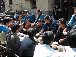 十一黃金周期間,充滿神秘色彩的湘西游客絡(luò)繹不絕。美麗的風光和濃郁的民族文化讓游客流連往返,嘗嘗美味的農(nóng)家飯自然是不可少。圖為苗家姑娘唱著山歌為游客送上醇香的自制米酒。作者:劉雙雙