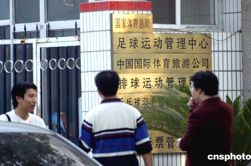 | 從十月二日晚北京現(xiàn)代隊的“罷賽事件”出現(xiàn)之后,北京國安足球俱樂部欲退出中超一事成為國慶黃金周期間最令人矚目的體育新聞,中國國家體育總局在第一時間下令讓中國足協(xié)一定要對這種嚴(yán)重違反體育道德規(guī)范的行為進(jìn)行嚴(yán)厲的查處,而國安足球俱樂部方面的強(qiáng)硬表態(tài)又讓中國足協(xié)投鼠忌器,騎虎難下。一位中國足協(xié)官員稱最晚十日會公布最后處罰決定。圖為十月八日,不少體育記者在中國足協(xié)門前等待中國足協(xié)對北京現(xiàn)代罷賽事件的最新消息。作者:盛佳鵬