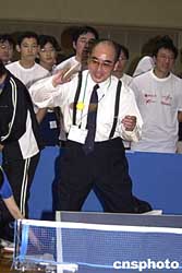 昔日威震八方的乒壇名將莊則棟,九日在應(yīng)邀出席日本橫濱首次舉辦的中日民間乒乓球大賽時(shí),在開(kāi)賽前走下場(chǎng)地,拿起久違的球拍,再度小試身手,令觀者大飽眼福。作者:王健