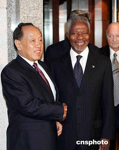 安南還特別感謝中國(guó)政府和人民在國(guó)際事務(wù)和聯(lián)合國(guó)活動(dòng)中發(fā)揮的積極作用。他說,聯(lián)合國(guó)重視中國(guó)參與維和行動(dòng)。中國(guó)派出的維和人員訓(xùn)練有素,在剛果、海地等地都展現(xiàn)了他們的專業(yè)精神和精良素質(zhì)。