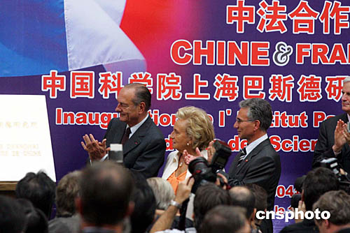 中新社上海十月十一日電 今天下午,在滬訪問的法國總統(tǒng)希拉克為中國科學(xué)院上海巴斯德研究所剪彩。他在此表示,中法兩國攜起手來在公共衛(wèi)生領(lǐng)域進(jìn)行國際合作,現(xiàn)在比以往任何時候都更為迫切。