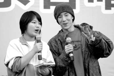 雖然昨天的北京并不是很冷,但是房祖名仍然是夸張地戴上了滑雪帽、穿著厚外套,他自己還有些羞澀地表示,本來是想脫掉外套,但又怕凍得彈不了吉他出丑。在一段自彈自唱的自我介紹后,現(xiàn)場的3000多名學(xué)生也跟著興奮了起來,一位女學(xué)生還自告奮勇地要與房祖名共同唱一曲,也許是沒見過這么多的照相機對著自己,女孩顯然是有些緊張,忘記了歌詞,但是更緊張的沒想到是房祖名,以至于弄得在臺上的兩個人都頻頻忘詞,整首歌也在斷斷續(xù)續(xù)中結(jié)束。