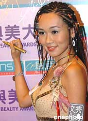 香港藝人吳文忻12日出席在香格里拉酒店舉行的2004屈臣氏健與美大賞慈善頒獎(jiǎng)晚宴。作者:趙振清