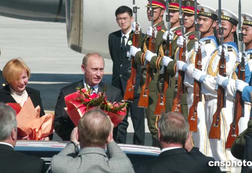 中新網(wǎng)10月14日電 應(yīng)中國國家主席胡錦濤的邀請,俄羅斯聯(lián)邦總統(tǒng)弗拉基米爾·弗拉基米羅維奇·普京于14日上午抵達北京,開始對中國進行為期3天的國事訪問。