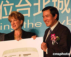 美國(guó)惠普公司總裁卡莉·菲奧莉納十月十五日下午出席“建設(shè)數(shù)位新臺(tái)北”的記者會(huì),并見(jiàn)證惠普科技與臺(tái)灣太極影音科技簽訂在臺(tái)北建立3D電腦動(dòng)畫電影制作廠的簽約儀式。中新社記者:張明新