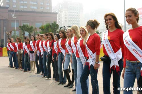 來(lái)自馬來(lái)西亞、菲律賓、香港等十九個(gè)國(guó)家和地區(qū)的佳麗十月十七日亮相長(zhǎng)沙街頭。作者:白祖偕