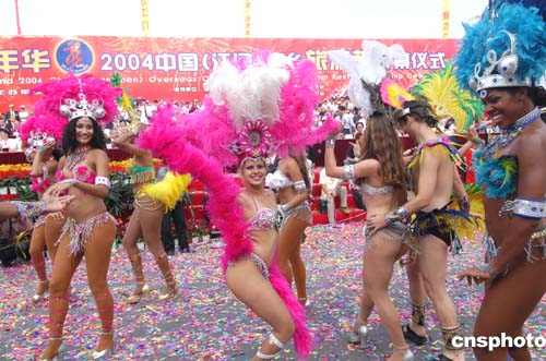 中國(江門)僑鄉(xiāng)華人嘉年華暨二零零四中國(江門)僑鄉(xiāng)旅游節(jié),十月十七日在廣東江門市隆重舉行,來自海內(nèi)外和五邑各市、區(qū)共四十二支表演隊和方陣組成的二千多人的龐大表演隊伍在大街上進(jìn)行了浩浩蕩蕩大巡游。作者:羅仰明