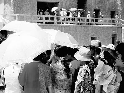 近年來,莫高窟面臨的旅游壓力空前巨大。從1979年正式向游人開放時(shí)起,每年來敦煌石窟旅游的人數(shù)迅速上升,今年估計(jì)將突破40萬(wàn)人次。今年國(guó)慶“黃金周”期間,各地涌到敦煌、進(jìn)莫高窟參觀的游客總數(shù)即超過2萬(wàn)人次。許多開放洞窟和狹窄棧道,都是人滿為患。超量游客進(jìn)入洞窟,使洞窟長(zhǎng)期陷于“環(huán)境疲勞”狀態(tài),導(dǎo)致體質(zhì)逐漸惡化,并直接助長(zhǎng)崖體及壁畫底仗中的氯化鈉聚積,催化莫高窟壁畫、塑像的已有病害。更有一些旅游者,還千方百計(jì)要觸摸這些古老珍寶。據(jù)統(tǒng)計(jì),暗中“動(dòng)手”者的比例高達(dá)3.9%。種種情況,構(gòu)成了對(duì)莫高窟文物的極大危害。