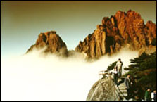 黃山位于安徽南部黃山市境內(nèi),隨著徽杭高速公路的貫通,坐車從浙江杭州到黃山僅需2小時(shí)。黃山總面積1200平方公里,其中風(fēng)景名勝區(qū)為154平方公里,1985年以唯一的山岳型風(fēng)景區(qū)入選中國十大風(fēng)景名勝,被世界教科文組織確認(rèn)為世界自然和文化雙遺產(chǎn),有“黃山歸來不看岳”的美稱。黃山景勝,以峰為體,峰林似海,有天都峰、蓮花峰、光明頂、始信峰、玉屏峰等,其中蓮花峰最高,海拔1864米。黃山景致優(yōu)美,最有名的當(dāng)屬奇松、I怪石、云海、溫泉。黃山群峰兀立,深壑縱橫,。還形成了眾多的溪瀑峽谷景觀。著名的有九龍瀑、人字瀑、百丈泉、翡翠谷(又名情人谷)。黃山現(xiàn)有云白(云谷寺-白鵝嶺)、松谷(松谷庵-松林峰)、慈玉(慈光閣-玉屏樓)三條觀光索道,供游人上下山選用。