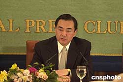 中國(guó)駐日本大使王毅十八日應(yīng)邀在日本記者俱樂(lè)部舉行首次大型記者招待會(huì),闡明中國(guó)政府對(duì)日方針政策以及在歷史、臺(tái)灣等問(wèn)題上的原則立場(chǎng),并回答了記者提問(wèn)。作者:王健