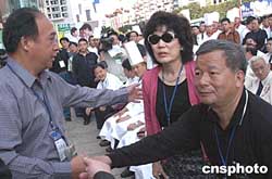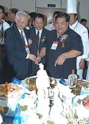臺灣中華美食交流協(xié)會訪問團(tuán)團(tuán)長徐旺火(圖右一)一行十一人,二十日出席在福州舉辦的第十四屆中國廚師節(jié)暨海峽兩岸美食節(jié)開幕式,受到祖國大陸烹飪界人士熱烈歡迎。作者:劉可耕