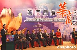 澳門(mén)國(guó)際華商經(jīng)貿(mào)會(huì)議2004,二十日在澳門(mén)旅游塔會(huì)展娛樂(lè)中心舉行,有五百多名海內(nèi)外華商社團(tuán)及企業(yè)精英出席活動(dòng),會(huì)議為期二天。作者:梁永強(qiáng)