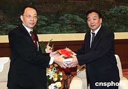 全國人大常委會副秘書長喬曉陽十月二十一日在北京人民大會堂會見以陳景生資深大律師為首的香港大律師公會訪京團。作者:毛建軍