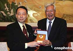 全國(guó)政協(xié)副主席羅豪才十月二十三日在北京會(huì)見(jiàn)以資深大律師陳景生為首的香港大律師公會(huì)訪(fǎng)京團(tuán)。作者:毛建軍