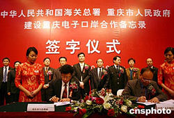 海關(guān)總署總工程師楊國勛和重慶市副市長吳家農(nóng)今天在備忘錄上簽字。這標(biāo)志著重慶電子口岸建設(shè)正式啟動(dòng)。