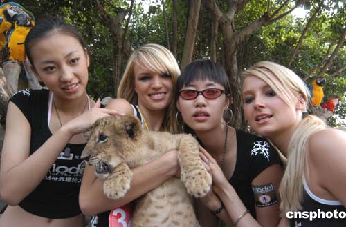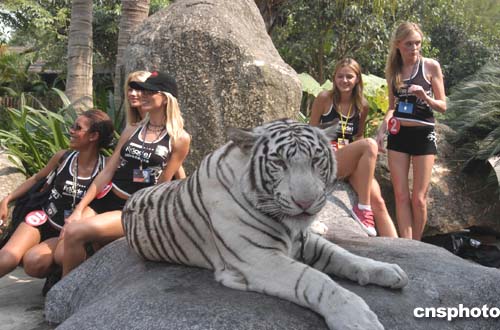 二零零四星際世界模特大賽全球總決賽入圍的五十多名選手,十一月二日首次亮相廣州長(zhǎng)隆夜間動(dòng)物世界進(jìn)行形體展示和外景拍攝。作者:劉衛(wèi)勇