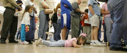 中新網(wǎng)11月3日電 據(jù)美聯(lián)社報(bào)道8歲的埃米利-馬歇爾正與他的父母在一起。其父母正在美國(guó)田納西州一投票站排隊(duì)參加總統(tǒng)投票。(春風(fēng))