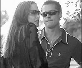 記者近日在彼特和朱莉演對手戲的新片《史密斯夫婦》的片場拍到了他們兩人一邊找感覺一邊打趣嬉笑的照片,照片顯示,彼特和朱莉都戴著茶色眼鏡,顯得很酷的樣子,留著寸頭的彼特穿著一件棕色T恤,朱莉則穿著一件幾乎相同顏色的半透明繡花上裝,一頭金發(fā)隨意地披在肩膀上,顯得性感又不失清純,兩人站在一起的模樣的確是很有情人像。不知是否是劇中的要求,這張照片中的彼特正盯著朱莉看得入神,而朱莉也許是看到有記者在場的原因而故意轉(zhuǎn)過頭去沒有迎合彼特的灼人目光。