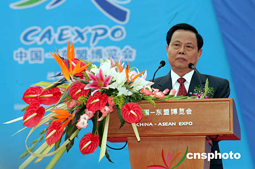 十一月三日,首屆中國-東盟博覽會(huì)在廣西南寧開幕,來自中國及東盟十國的政要及二萬一千名賓客將參加這一盛會(huì)。圖為廣西壯族自治區(qū)主席陸兵在中國-東盟博覽會(huì)開幕式上致辭。中新社記者:武仲林
