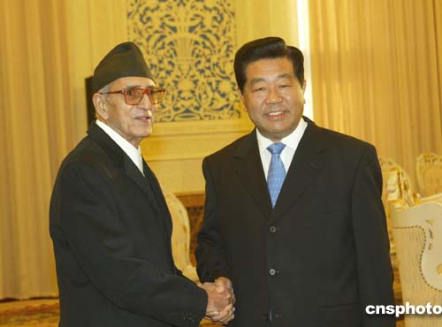 十一月五日,中共中央政治局常委、全國(guó)政協(xié)主席賈慶林在北京人民大會(huì)堂會(huì)見(jiàn)了由黨主席柯依拉臘率領(lǐng)的尼泊爾大會(huì)黨代表團(tuán)。作者:史利