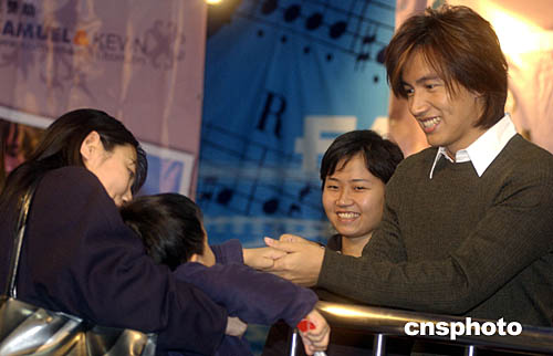圖為來(lái)自日本的歌迷與心中偶像握手。