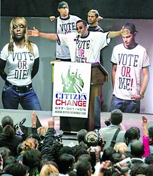 吹牛老爹曾提出了“不投票毋寧死”的口號,意在號召年輕選民參加美國大選投票,珍惜投票權,并建立了一個名為公民選擇的組織。吹牛老爹表示,這個組織還將繼續(xù)存在下去,參與到各種政治活動中。他說:“這只是第一步,能讓更多的人參與到我們的組織中。我準備建立一個基礎組織,授權給他們。”吹牛老爹說:“我已經意識到我本可以做得更好。除了攻擊布什,我其實可以用啟發(fā)的方式,引導美國的年輕人去思考,讓他們自己去作出決定。此前,年輕選民都不太關心總統(tǒng)選舉之事,但現(xiàn)在我們把這種情況稍微扭轉過來,我們的努力獲得了回報!