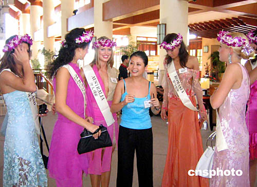 前來三亞參加第54屆世界小姐總決賽的澳大利亞小姐楚楚動人,落落大方。