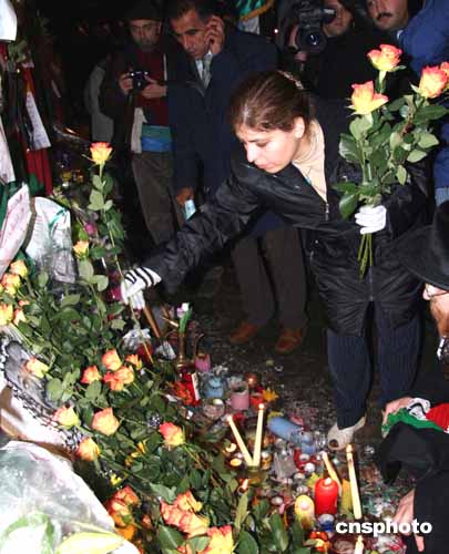 圖:人們?cè)诎屠柝悹栁麽t(yī)院外為阿拉法特獻(xiàn)花