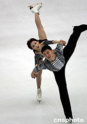 中國雙人滑選手張丹、張昊在短節(jié)目比賽中,精彩地演繹了美國布魯斯樂曲伴奏的短節(jié)目All Alone,奪得第二名。