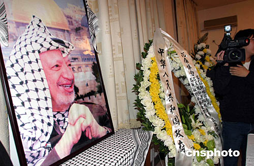 圖:北京部分民眾自發(fā)悼念阿拉法特