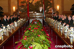 中國國務(wù)院總理溫家寶十一月十二日在北京會(huì)見盧森堡首相容克。中新社記者:滿會(huì)喬