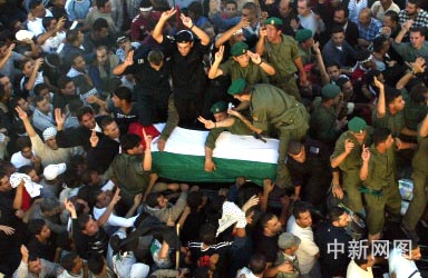 中新網(wǎng)11月12日電 綜合消息,當(dāng)?shù)貢r(shí)間15時(shí)17分巴勒斯坦民族權(quán)力機(jī)構(gòu)主席阿拉法特的遺體運(yùn)抵約旦河西岸城市拉馬拉。靈柩抵達(dá)拉馬拉官邸后,穆斯林神職人員誦讀《可蘭經(jīng)》。隨后,阿拉法特被葬在官邸內(nèi)綠樹環(huán)繞的白色大理石墓中。