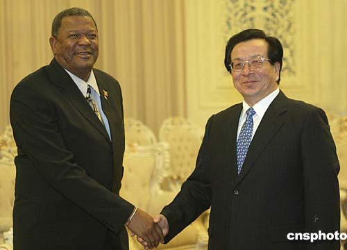 曾慶紅今天下午會見了到訪的安提瓜和巴布達(dá)總理斯潘塞。他說,根據(jù)中方倡議,“中國-加勒比經(jīng)貿(mào)合作論壇”首屆部長級會議將于明年二月在牙買加舉行,中國愿與各方共同努力,使會議取得成功,以推動中國同包括安巴在內(nèi)的加勒比國家的經(jīng)貿(mào)關(guān)系的發(fā)展。