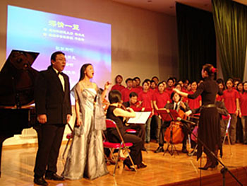 藝術(shù)專(zhuān)業(yè)留學(xué)生們獻(xiàn)上了主題為“人間自有真情在”的精彩文藝節(jié)目。晚會(huì)分為“追思”、“歸來(lái)”和“展望”三個(gè)單元。大合唱《深情一望》,寄托了對(duì)逝者的無(wú)限哀思,引人垂淚。音樂(lè)劇《歸來(lái)》和一曲“說(shuō)句心里話(huà),使館就是咱的家……”贊揚(yáng)了使館工作人員忘我救助傷員的動(dòng)人事跡。女生獨(dú)唱《親吻祖國(guó)》飽含對(duì)祖國(guó)的深情厚愛(ài)和對(duì)美好未來(lái)的無(wú)限憧憬,將整個(gè)晚會(huì)推向高潮。