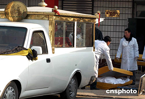 圖:包頭空難遇難者遣體等待親屬辨認(rèn)安葬