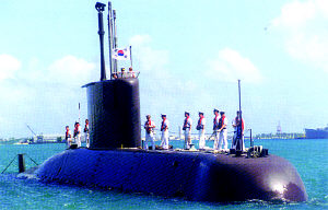 韓國(guó)的主要作戰(zhàn)潛艇是1992~1998年從德國(guó)購(gòu)買(mǎi)的9艘209型常規(guī)動(dòng)力潛艇。前兩艘和印度的潛艇一樣,是在德國(guó)HDW公司的基爾造船廠建造的。209型常規(guī)動(dòng)力潛艇是德國(guó)霍瓦茲德意志船塢集團(tuán)的杰作。它以出色的性能創(chuàng)造了常規(guī)潛艇出口數(shù)量最多、使用國(guó)家最多的兩項(xiàng)世界紀(jì)錄,成為世界市場(chǎng)上的“名牌產(chǎn)品”。209型潛艇的集中控制能力和自動(dòng)化水準(zhǔn)比其他潛艇高許多。它可以下潛到300米,水下最大航速23節(jié),并且裝備了8具533毫米魚(yú)雷發(fā)射管,可在最大深度發(fā)射魚(yú)雷。該艇采用數(shù)字化火控系統(tǒng),可實(shí)時(shí)從探測(cè)轉(zhuǎn)入攻擊,在一擊不中的情況下可以實(shí)施再攻擊。除魚(yú)雷外,209型潛艇可以使用美制“魚(yú)叉”型潛射導(dǎo)彈。