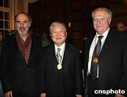11月22日晚,中國著名建筑學(xué)家吳良鏞教授在巴黎出席法國建筑科學(xué)院院士就位儀式。吳良鏞教授是在1999年獲得該院外籍院士稱號(hào)的,事隔5年,他終于有機(jī)會(huì)專程赴巴黎舉行就位儀式。擁有300名院士的法國建筑科學(xué)院有60名外籍院士,吳教授是3名中國籍院士之一。圖為吳良鏞院士和法國建筑科學(xué)院院長(右)和中國國家大劇院的設(shè)計(jì)者、法國建筑師安德魯在就位儀式上合影。作者:鐘誠