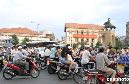 越南胡志明市擁有三百萬(wàn)輛摩托車,一到下班,摩托車大軍擁塞街頭。作者:邢健